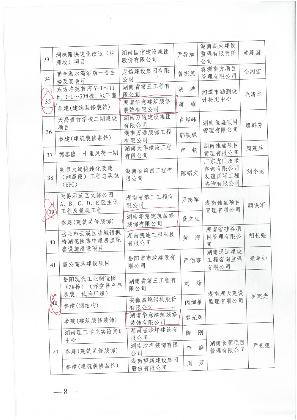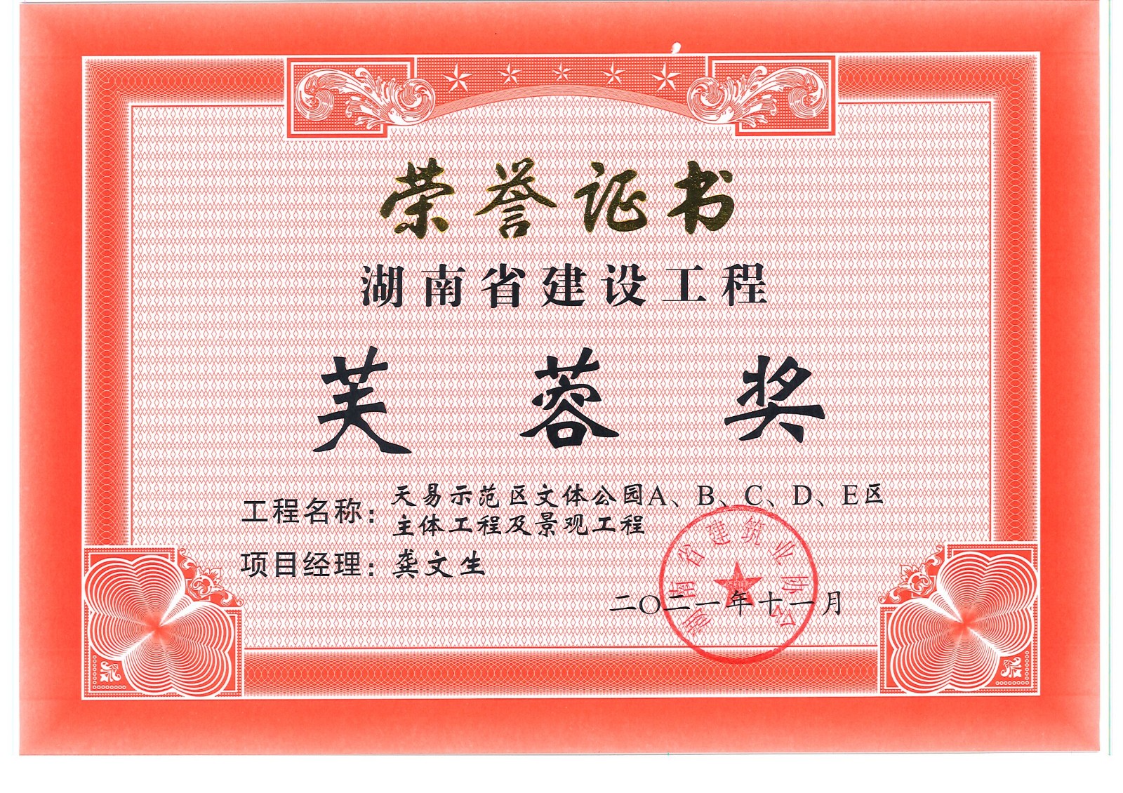芙蓉獎---中南大學大學科技園總部建設項目、東方名苑首府Y-1~11#、D-1~53#棟、地下室、天易示范區文體公園ABCDE區主體工程及景觀工程、岳陽現代工業制造園(3#棟)(浮空器產品總裝、試驗廠房)
