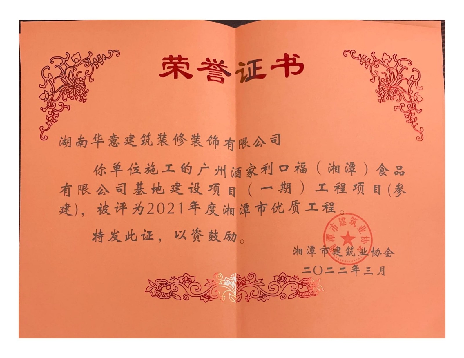 湘潭市優質工程--廣州酒家利口福(湘潭)食品有限公司基地建設項目(一期)工程項目